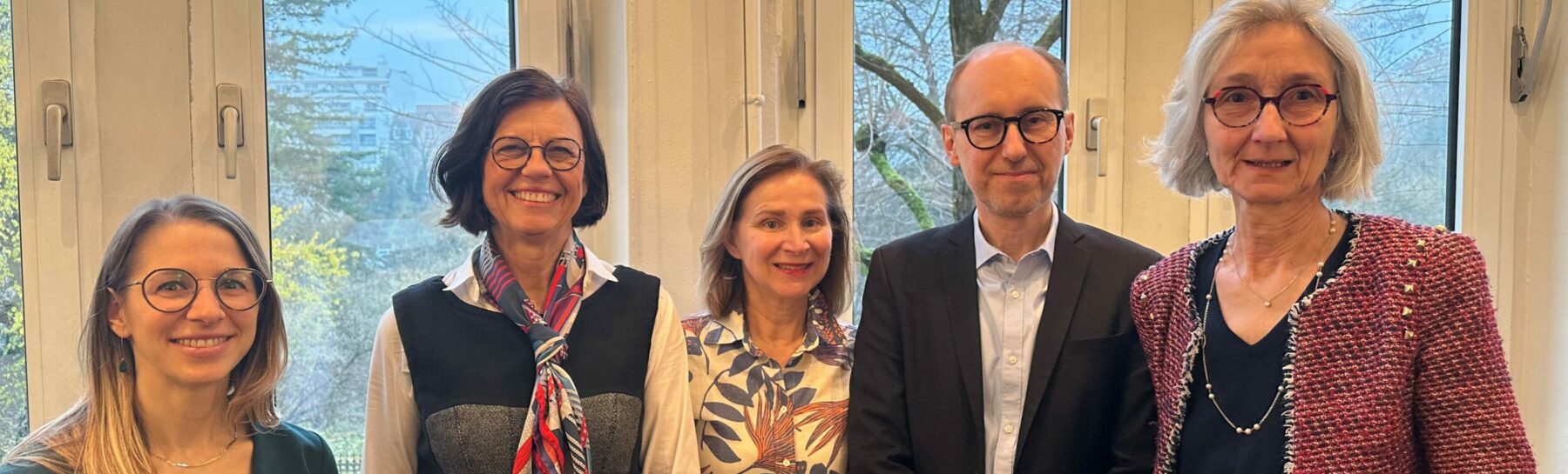 Photo de l’équipe de direction – Décembre 2024, de gauche à droite : Anaïs WALDHART (Directrice adjointe), Dr Odile BLANCHARD (Médecin-conseil régional), Dr Françoise CUNY (Médecin-conseil régional adjoint), Dr Denis SCHNEIDER (Médecin-conseil régional adjoint), Dr Marie-Pascale BLANC (Médecin-conseil régional adjoint).