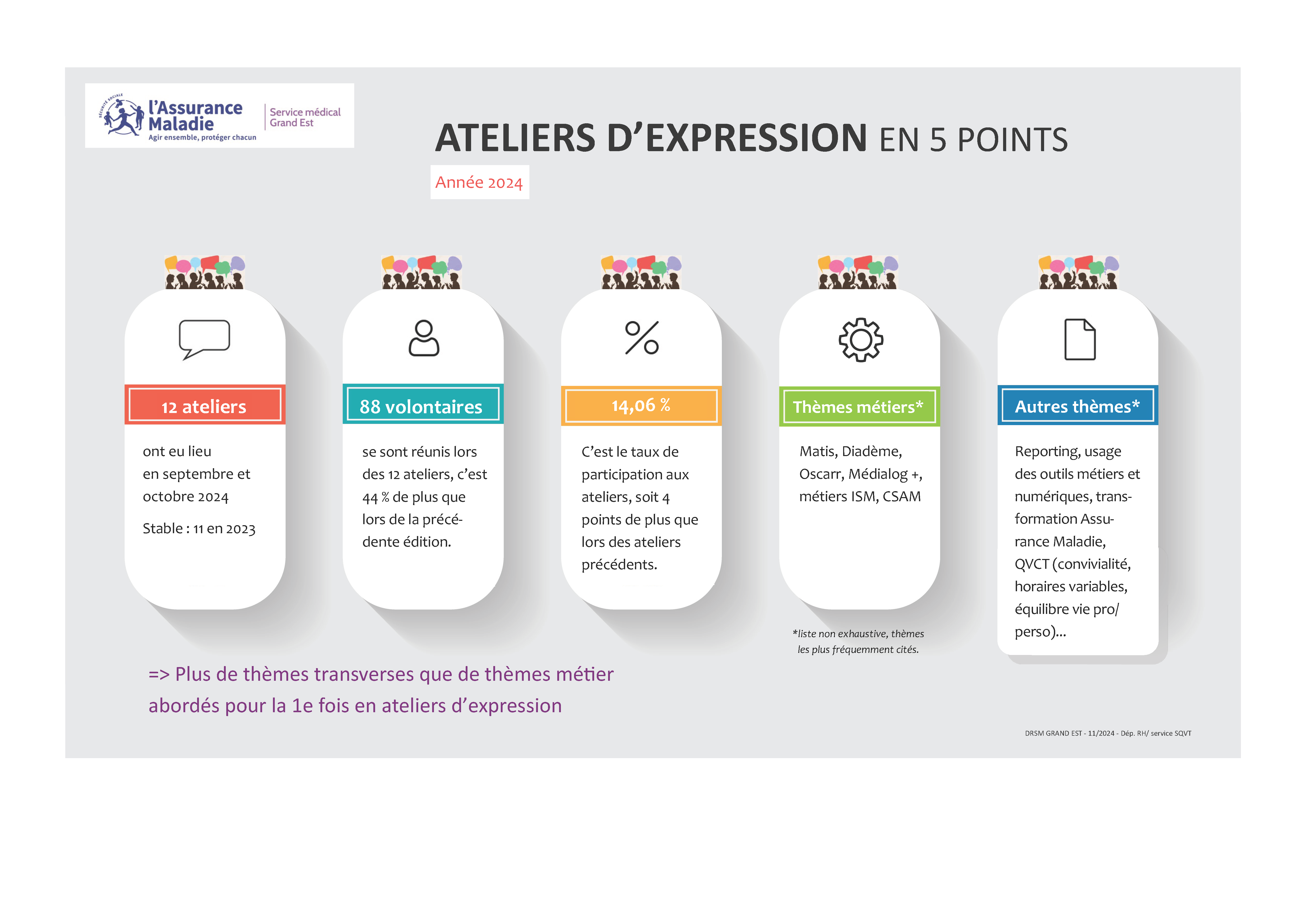 Le service Statistiques a poursuivi son implication en 2024 en tant que prestataire de services pour la Direction, les pôles et missions de la DRSM Grand Est, les ELSM et les partenaires intra et extra-institutionnels :